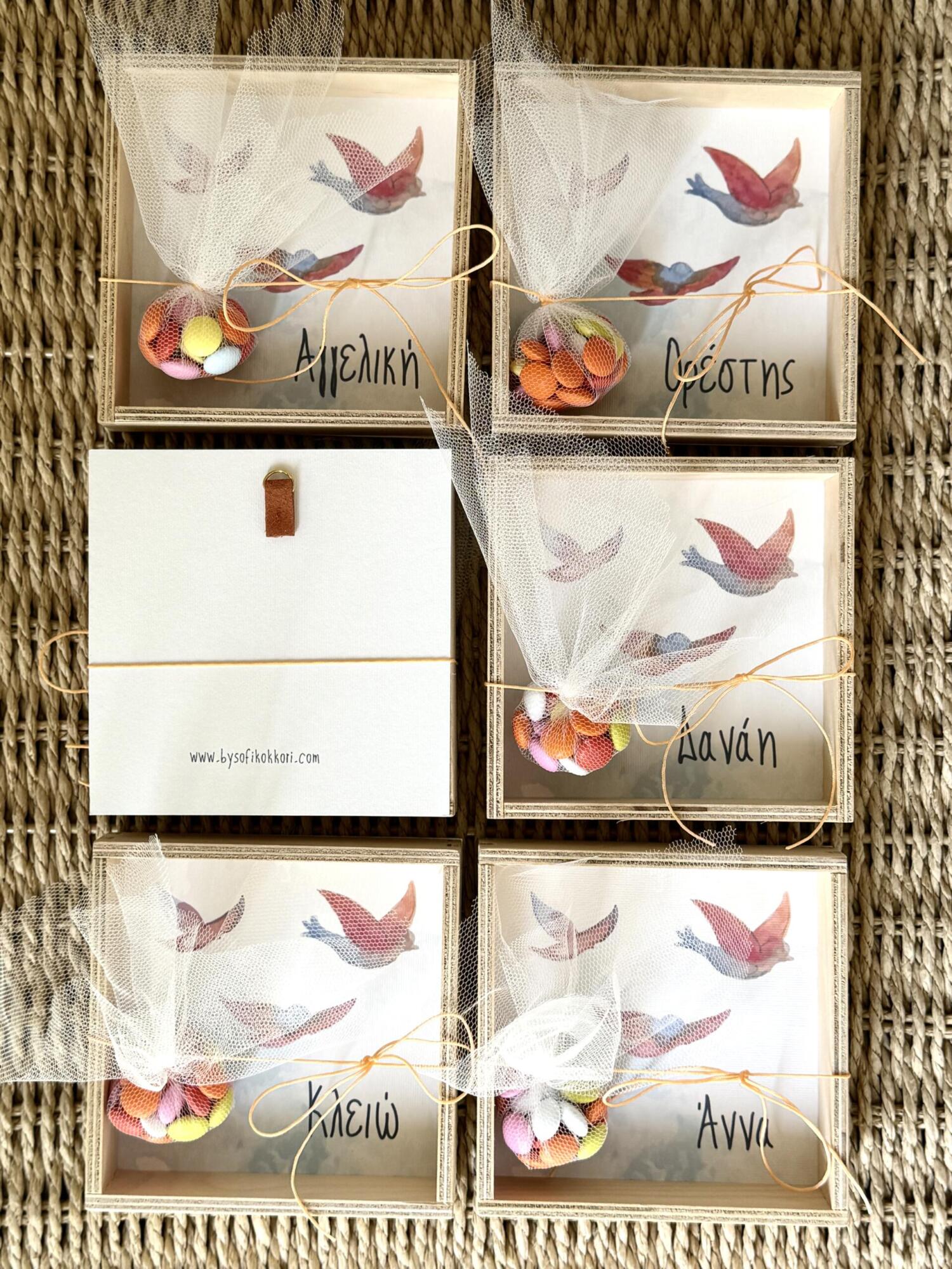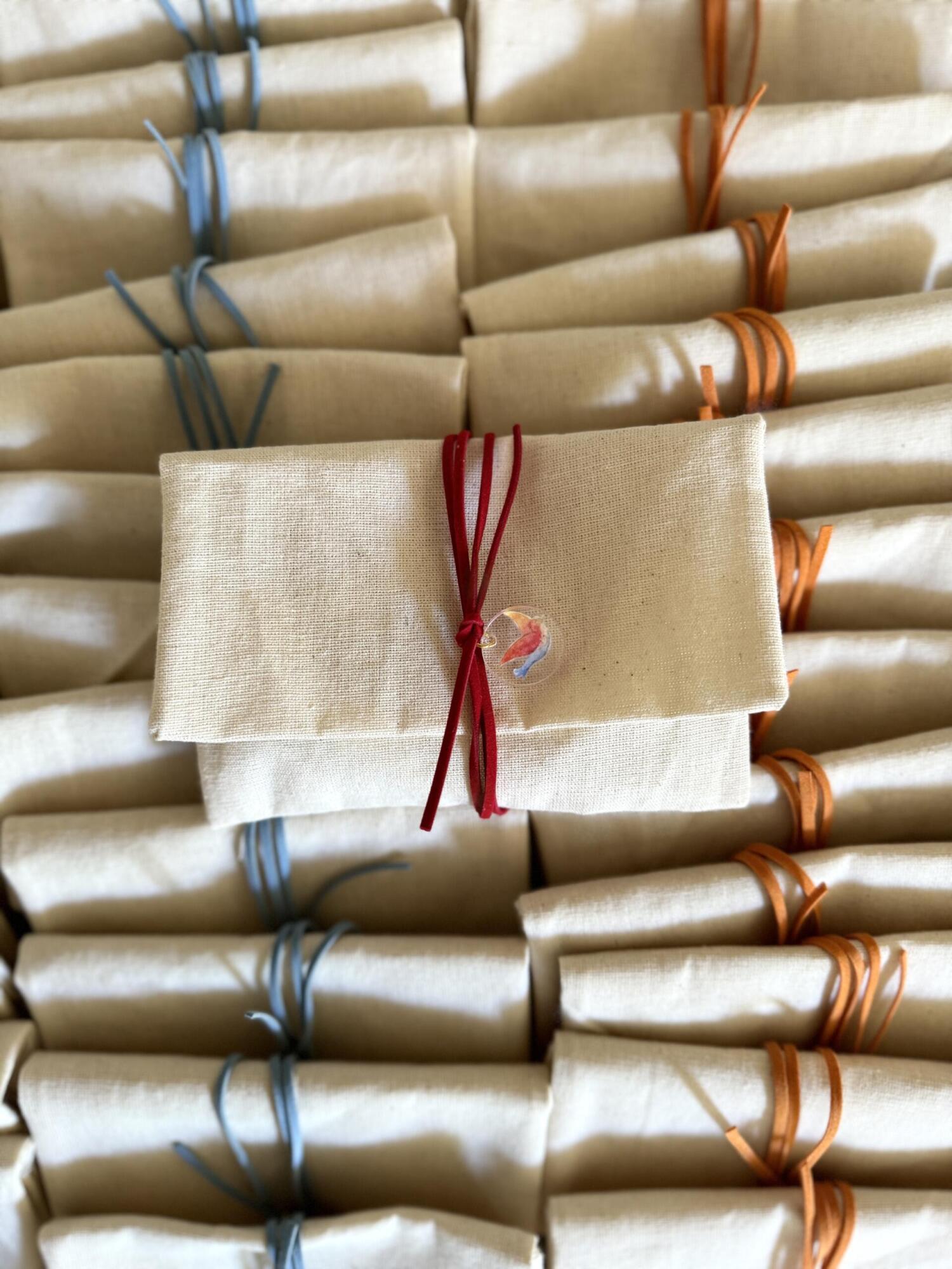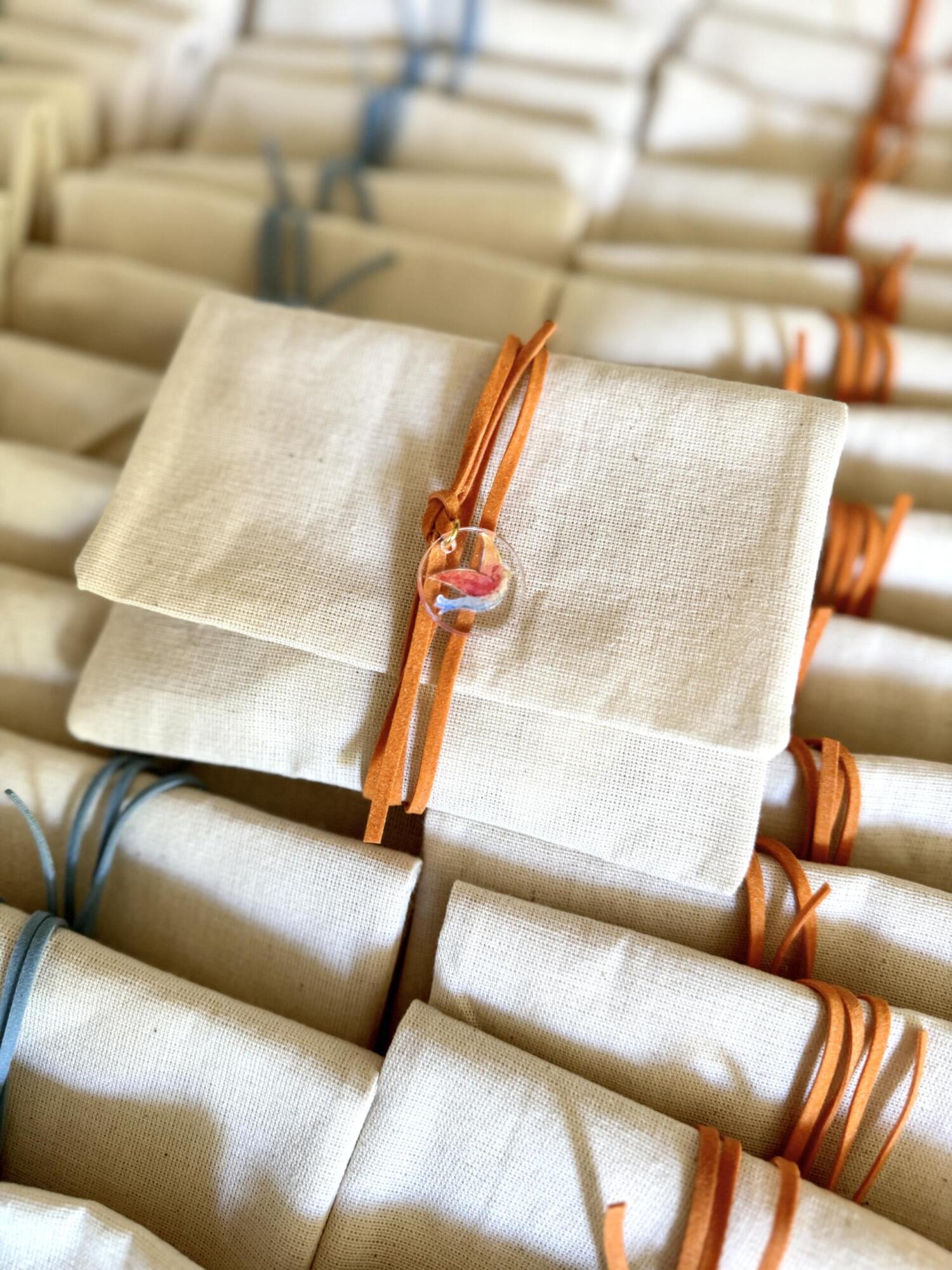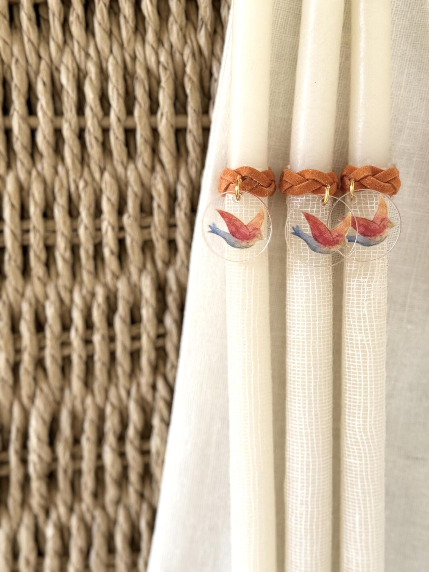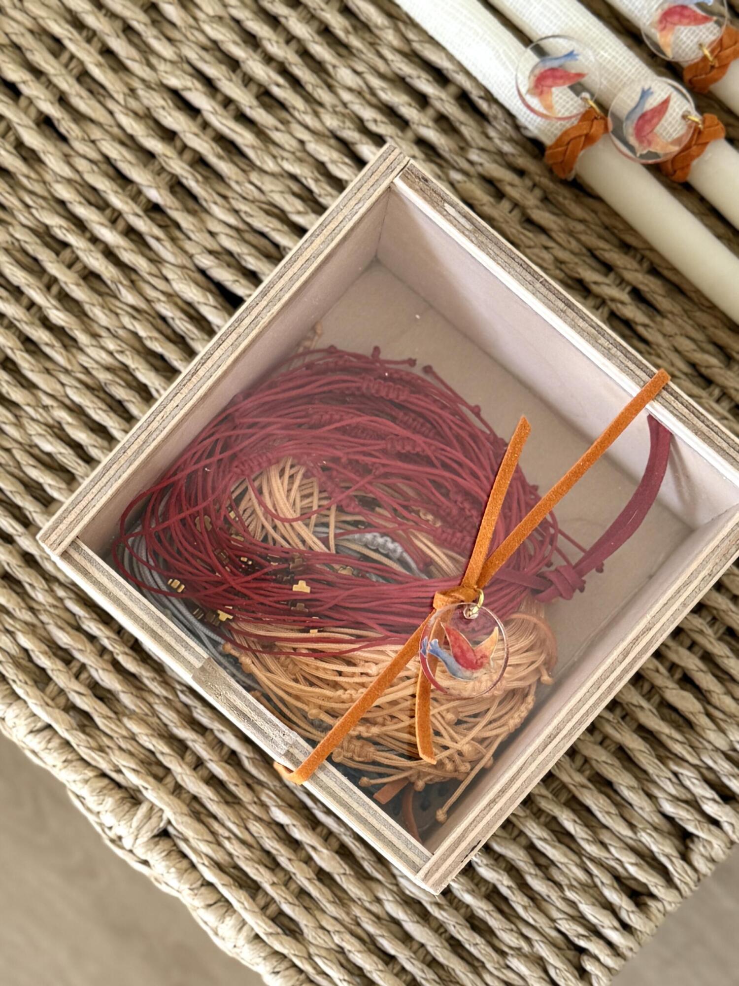 Items featured: Baptism invitation | Adults’ favors (linen envelope tied with suede ribbon and a custom acrylic pendant hanging) | Kids’ favors (personalised themed canvases) | Baptism set (candle, oilset, basket) | Witness bracelets | Witness box